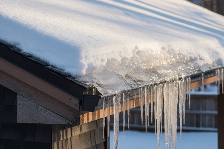See icicles hanging from your gutters? That's not just pretty winter scenery - it's a warning sign. Icicles often indicate ice dams forming, which means melted snow can't drain properly and might back up under your shingles. This is usually a sign of poor attic insulation and can lead to interior water damage.